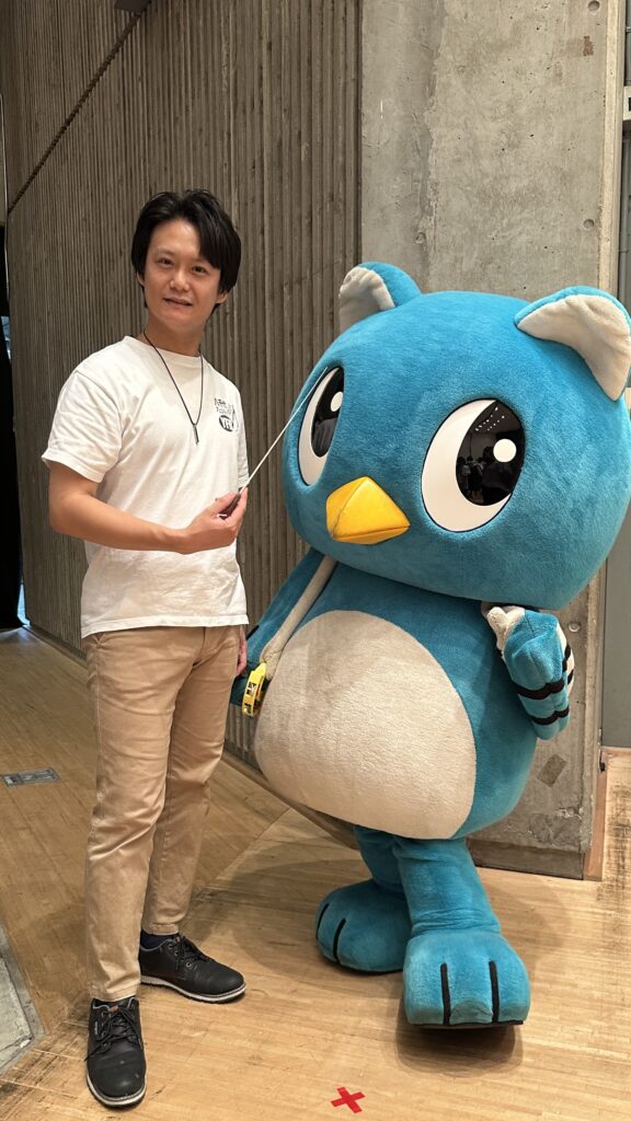 千葉県八千代市のゆるキャラ「やっち」が遊びに来てくれて、一緒に演奏しました。
