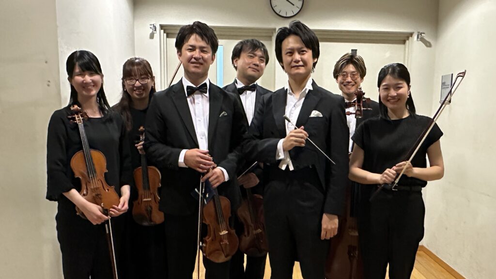 ↑弦楽器の講師チームと、終演後に。
